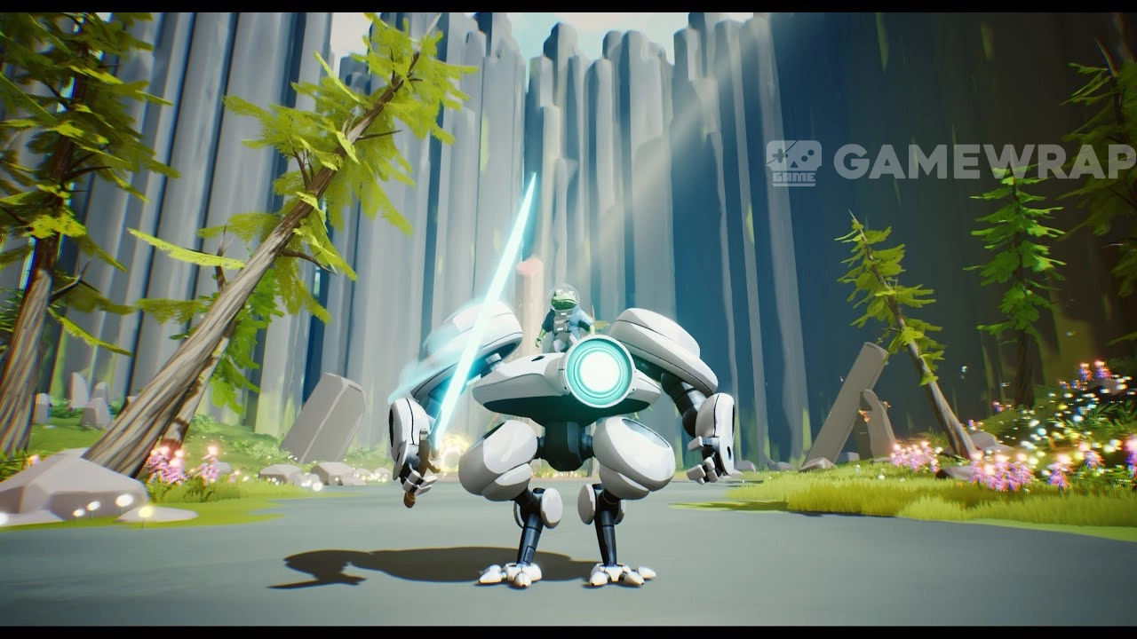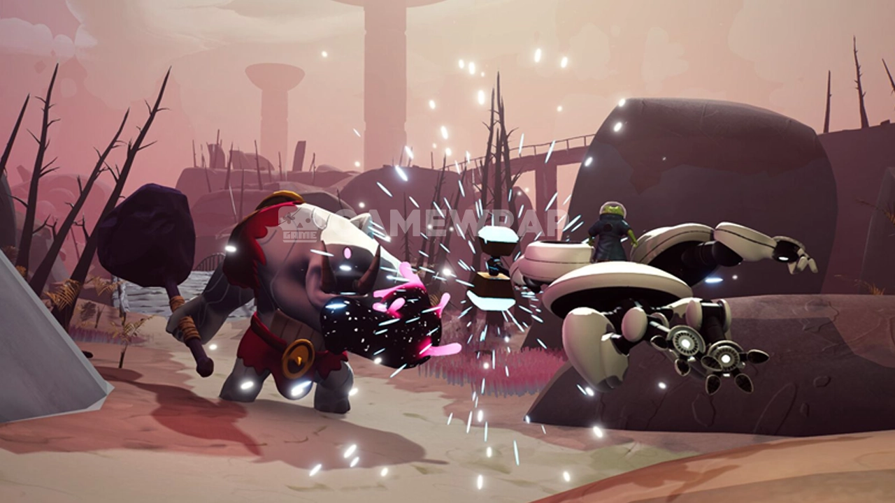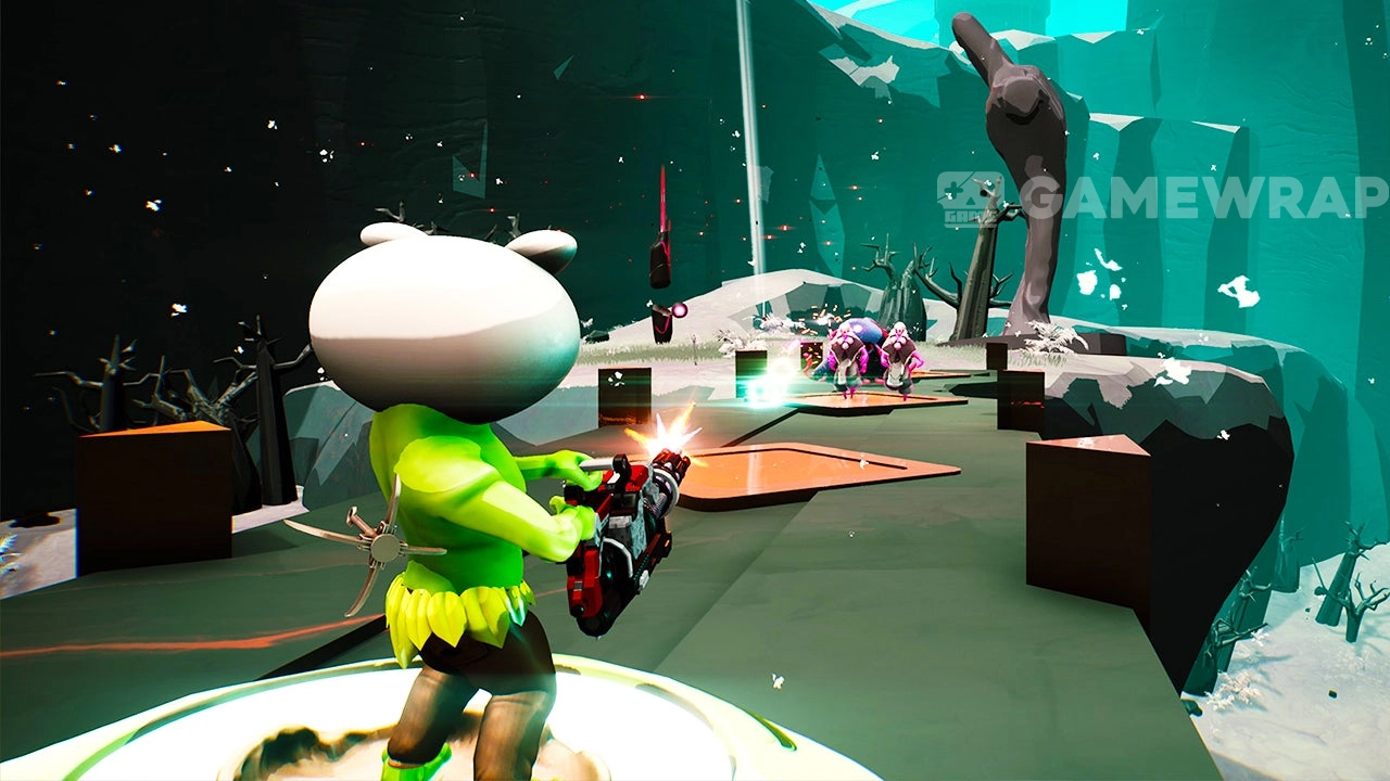 Simultaneously a sword-wielding mech and a gunslinging space frog in Shoulders of Giants, an explosively colourful sci-fi roguelike designed to put your teamwork to the test.