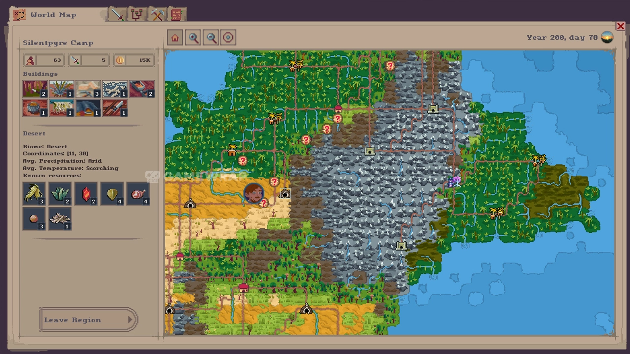 Generate unique settlements shaped by trade routes, character lifecycles, resource extraction, food consumption, occupations, wages, and the successes and tragedies of war - all before you etch your legacy into their annals.