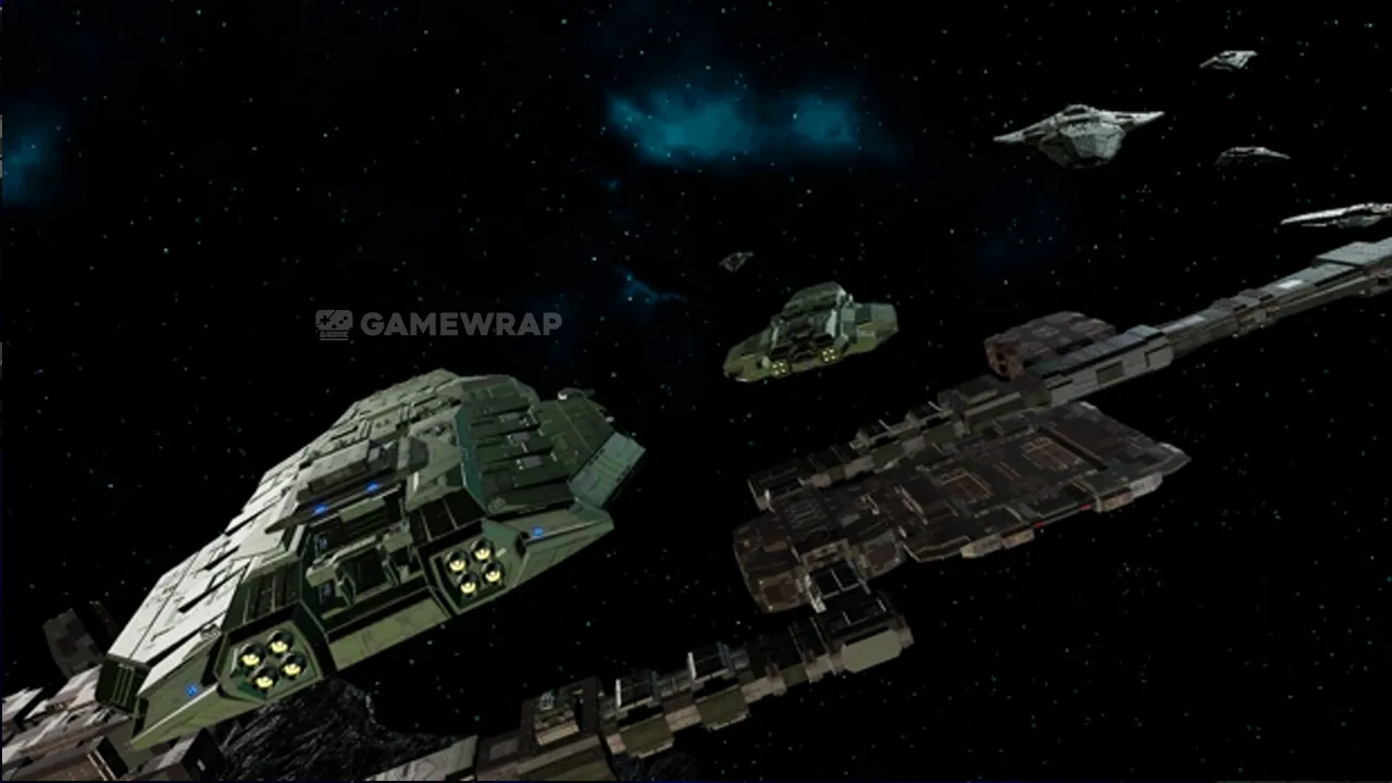 The player can test his flight skills by chasing down enemy ships, when flying above extensive space platforms and big warships, like cruisers and carriers.