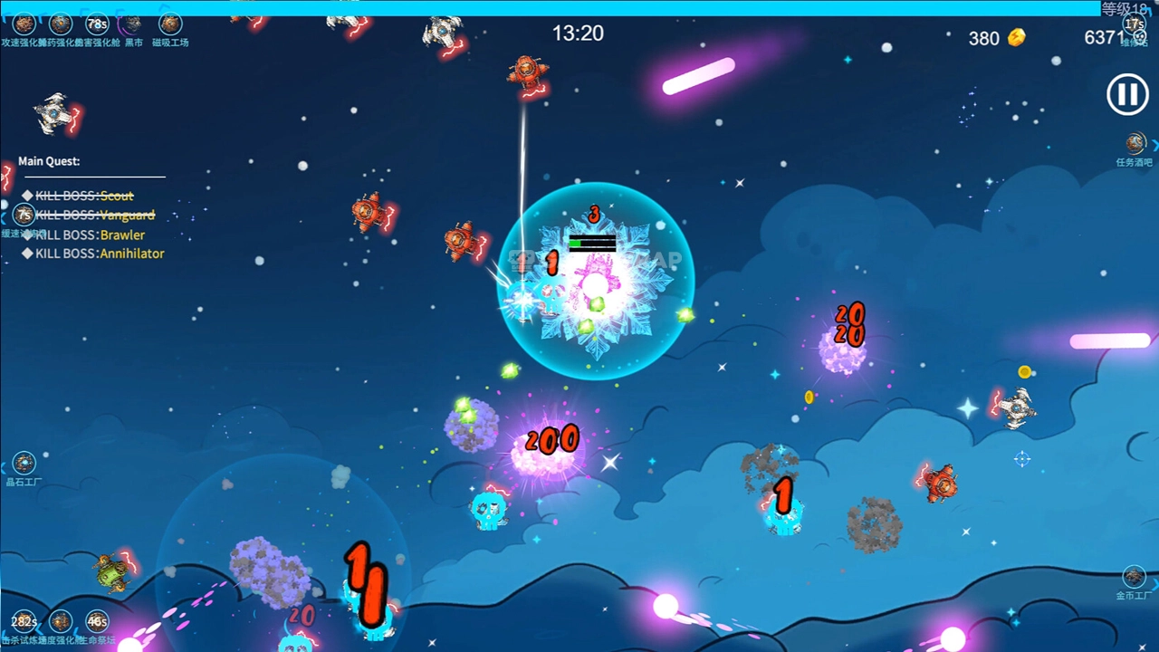 Each time you level up, you will randomly receive a talent or unlock a new spaceship. The number of talents you can carry into battle is limited, so you'll need to choose them wisely based on your strategy.