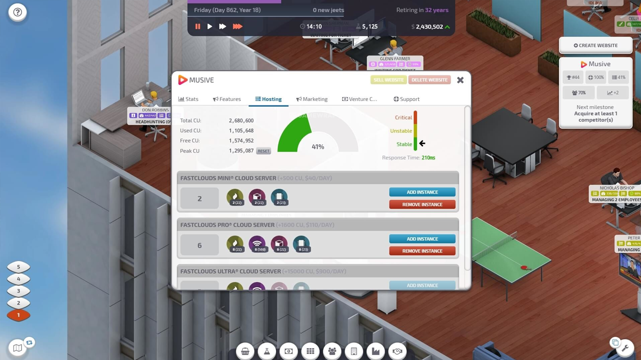 Startup Company is a business simulation sandbox game where you’re the CEO of a new company. Your job is to build your website and compete against the world's largest tech giants!