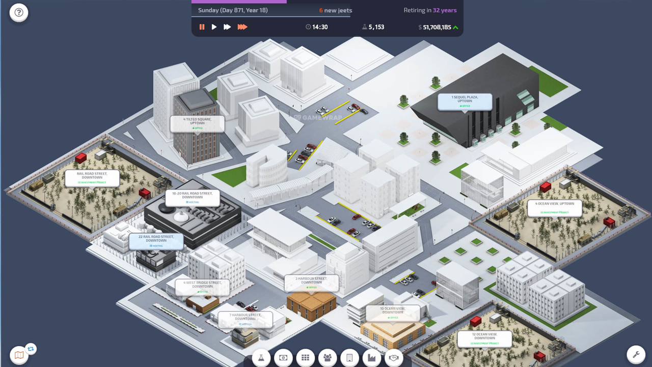 The city offers you offices in all sizes and shapes. It’s up to you to select the most suitable. It’s your job to organize and decorate the office while keeping your employees happy.