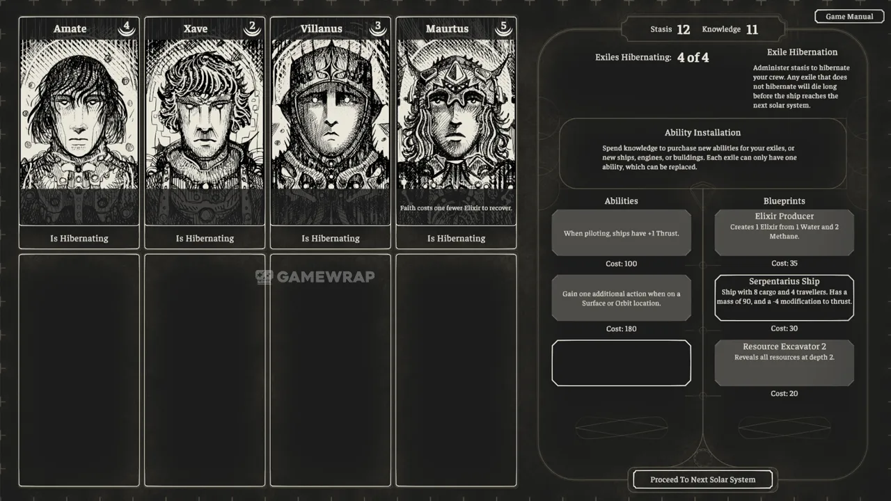Explore hostile solar systems, construct outposts, and craft precious materials to keep your crew alive. During the long hibernation between suns, expand the knowledge and ability of your exiles, and delay the arrival of The Gloom.