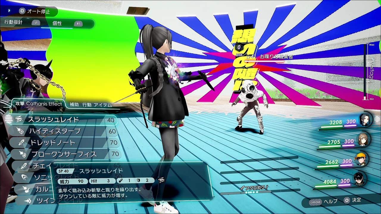 χ-Jack: When certain conditions are met in battle, a χ-Jack is activated, in which χ's singing voice hijacks the battlefield and powers up the Go-Home Club. The effects differ according to the song chosen. This move is powerful enough to turn the tide of battle completely.