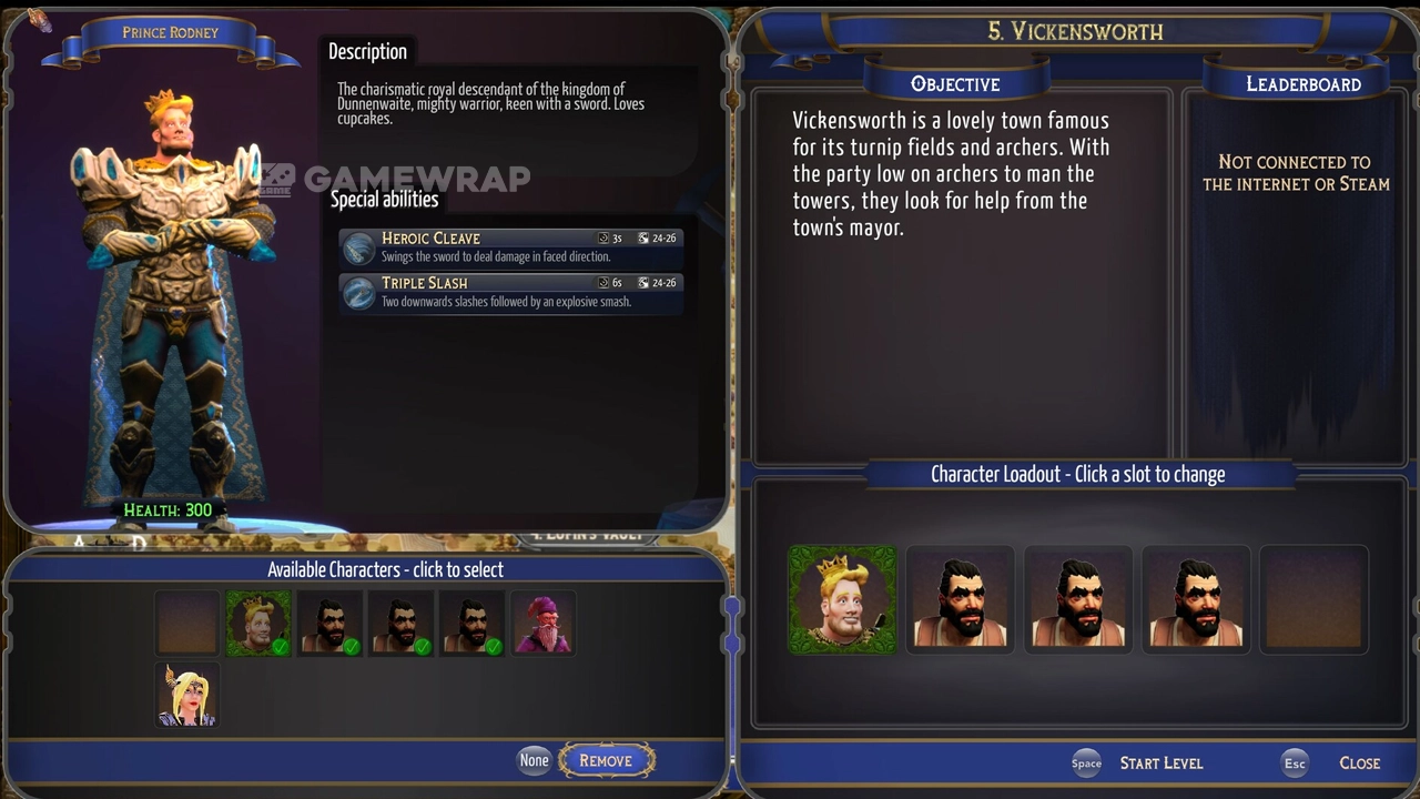 Embark on a clever narrative with Prince Rodney, Lump the Sidekick, Grumpy Wizard Gus, and Paladin Ilana. Face diverse enemies across 30+ maps (with more planned) while enjoying witty voice-acted dialogues.