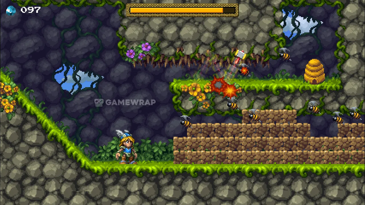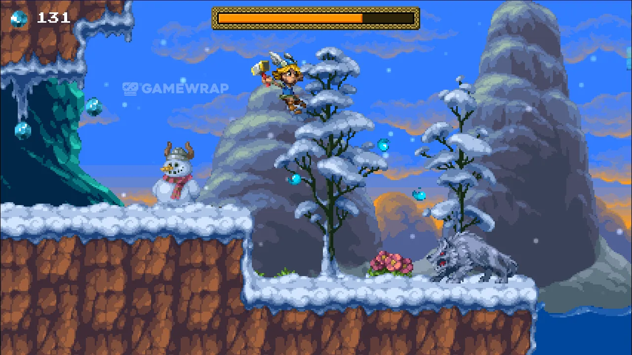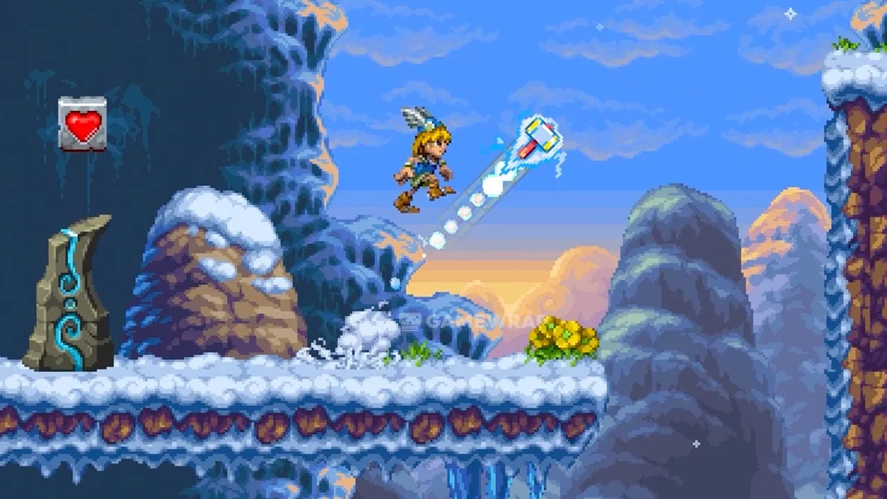 It features true 16-bit pixel art from Henk Nieborg and an original soundtrack by Chris Hülsbeck. Starting as a relatively simple platformer, Tiny Thor unfolds along the way, as you unlock all kinds of abilities that you dreamed of having back in the day.
