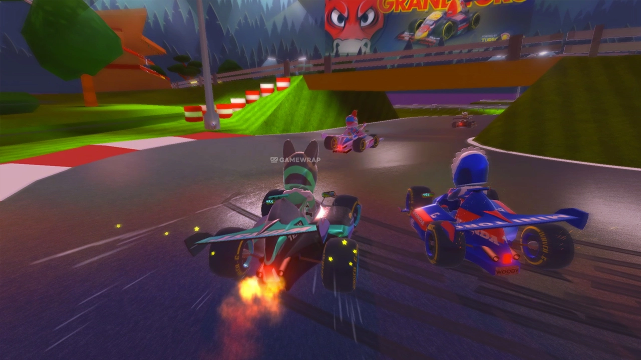 Online Multiplayer: Supports up to 8 players online with no waiting times; AI opponents fill in while rivals join the circuit.