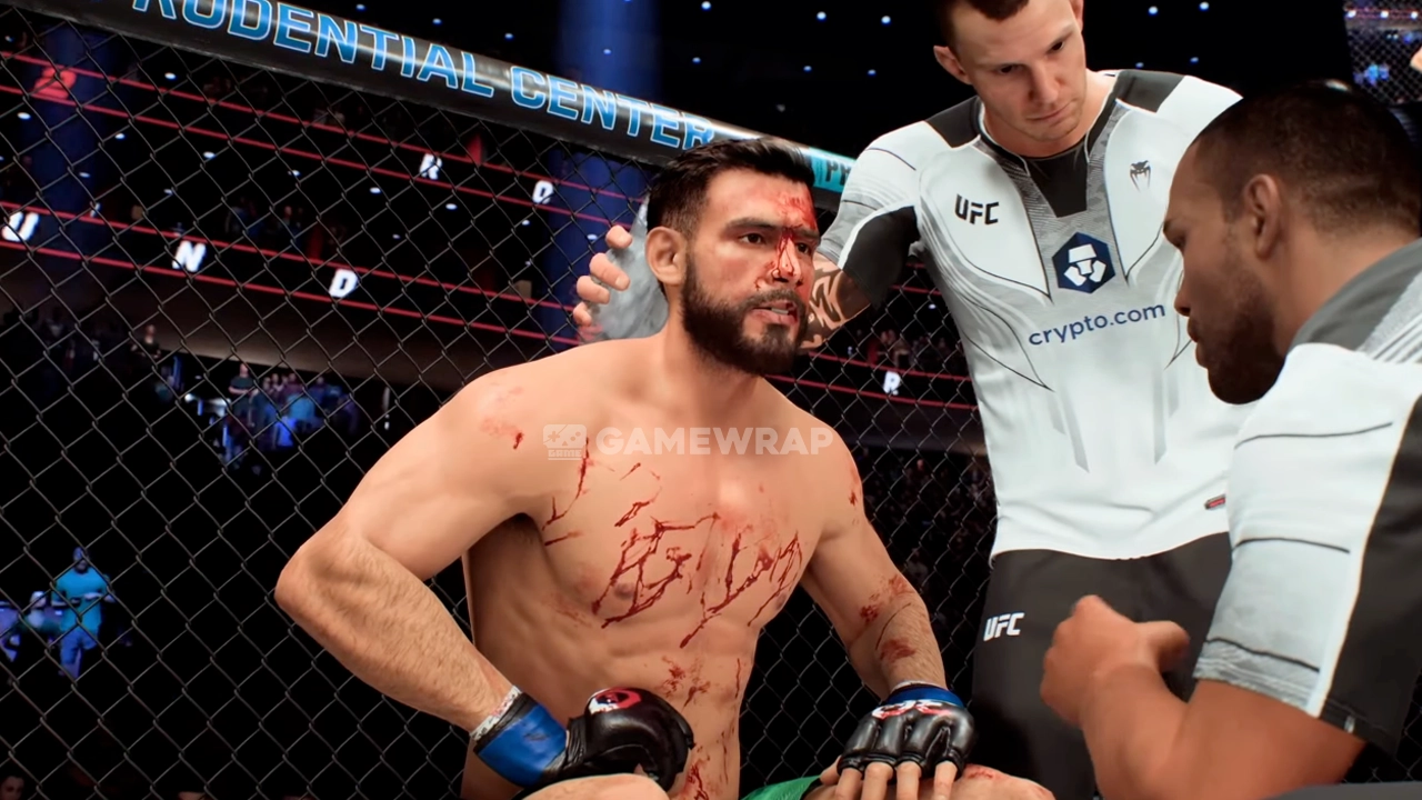 Authentic damage comes with authentic results. If the player sustains a significant injury like a broken nose or swollen eye the ref can now step in, pause the action, and get the ringside doctor to inspect the damage.