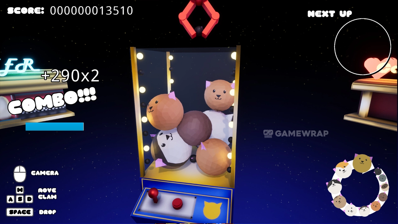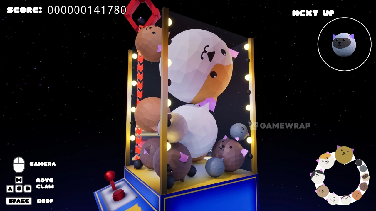 Prepare yourself for a challenging, strategic, exciting and fur-starting puzzle game! Inspired by the popular Suika Game (Watermelon Game) comes this 3D cat-tactic game combining growing cats in a confined claw machine.