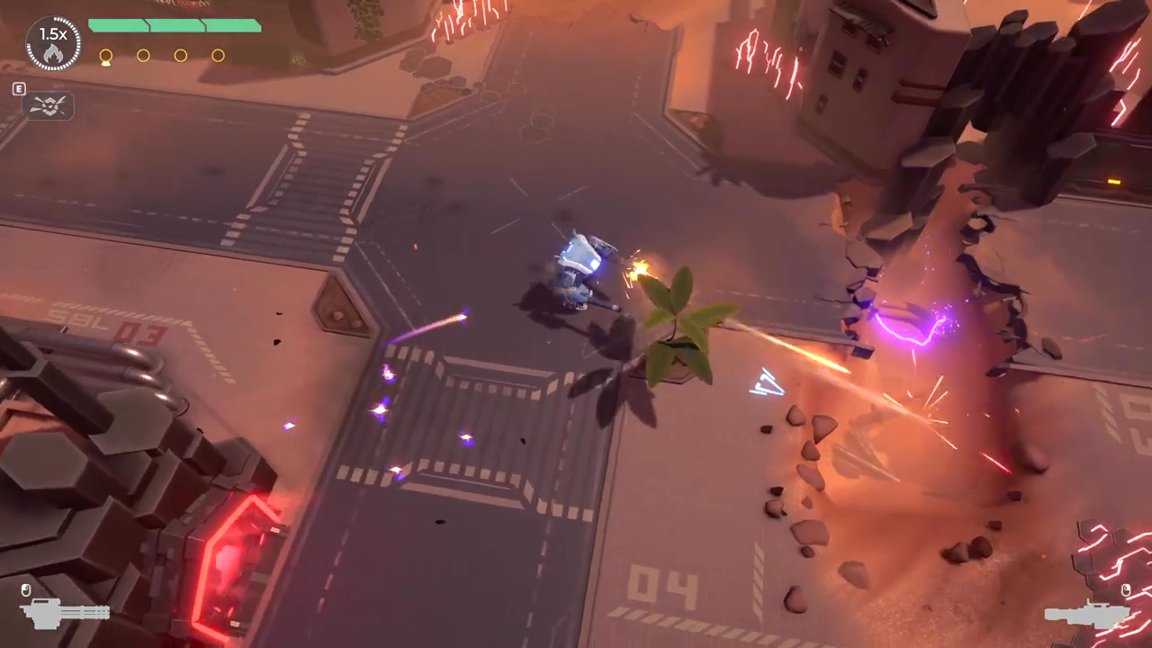 You play as a charming Mech unit that has awakened to discover a world overrun by corrupted AI. Choose your path and rewards allowing you to research new skills, mod your Mech and its weapons and grow stronger. And yes, you can also play with your Mech looks!