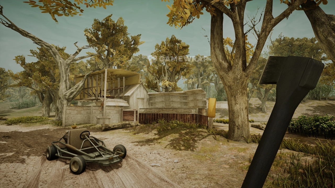 Chop down trees to build yourself a complex base or just look around for plywood to barricade one of the abandoned houses. Lay down traps to keep you safe inside.
