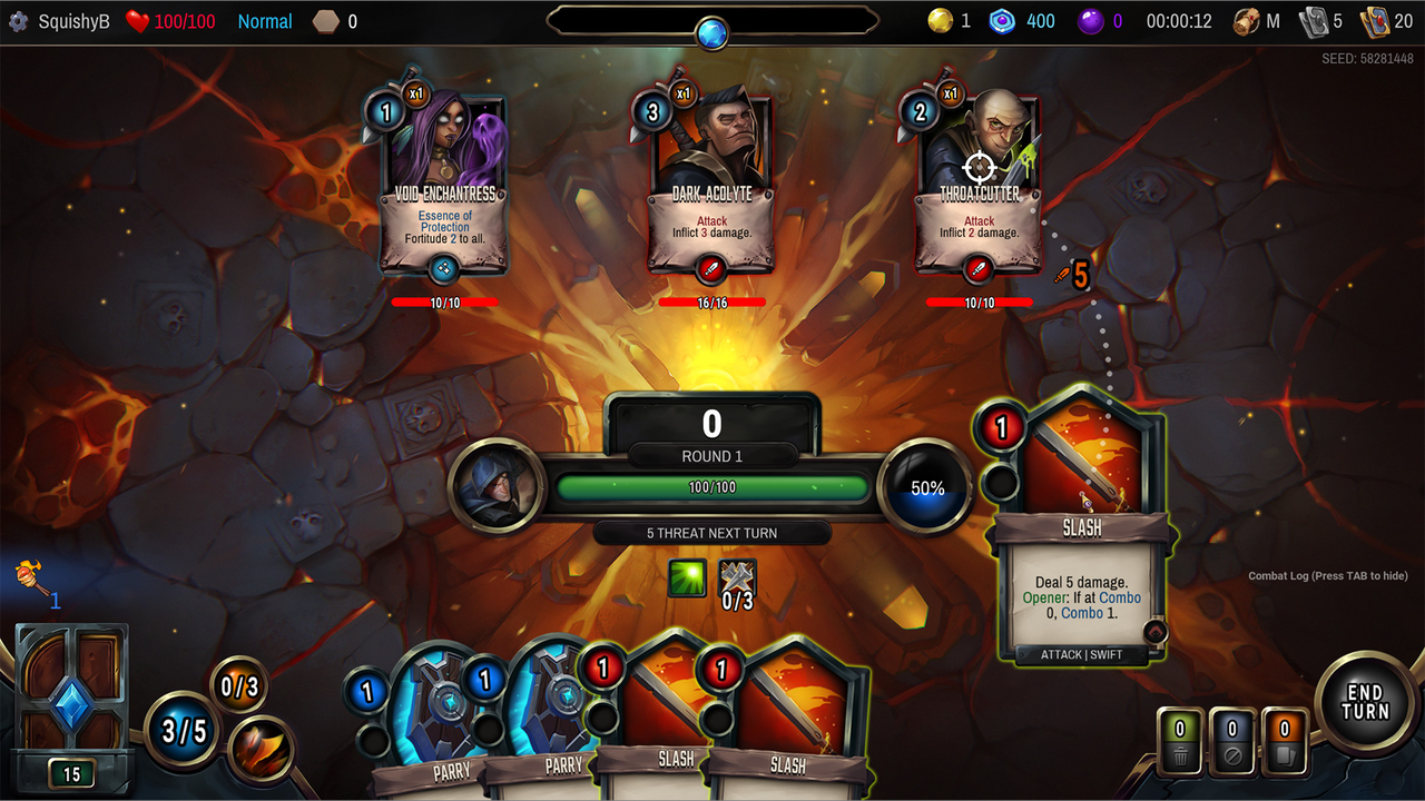 Vault of the Void is built on providing a low RNG experience, throwing as much control into the player's hands as possible. Card Rewards are public knowledge, and you can preview which enemies you'll be fighting before an encounter, with a chance to tailor your deck to suit! No Events are random; you know exactly where you're stepping with each path.You'll build your deck as you go, a CCG experience where you can always modify your deck. Swapping in and out cards before specific encounters will always help improve your odds and allows you to adapt to monster strategies.