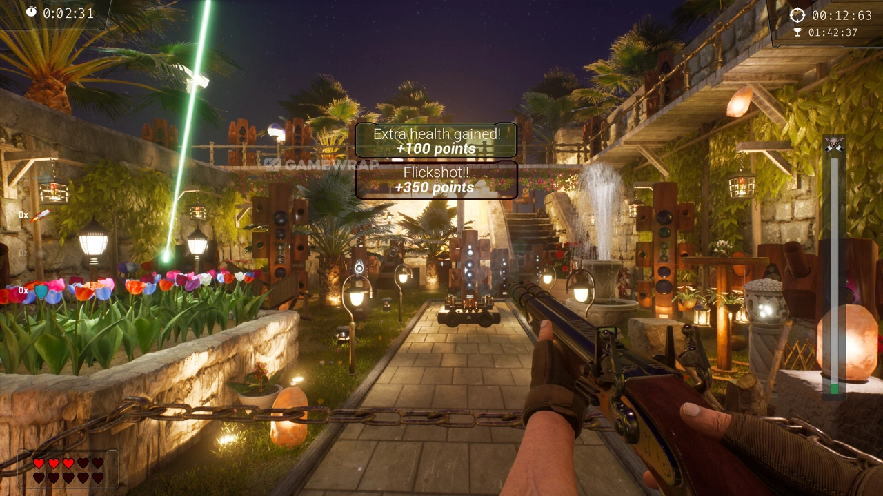 The maps feature intelligent machines called Target Launchers that spawn targets in different patterns (angle, speed, etc.) throughout a level. These Target Launchers also serve as laser-emitting loudspeakers, providing you with helpful cues for activation, upcoming bonus targets, and more.